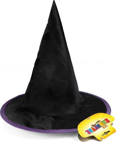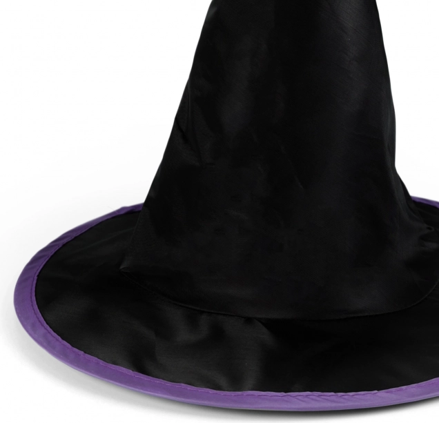 Gør kostumet helt perfekt. Den lette og holdbare hekseshat i behagelig tafetta er komfortabel at have på, og den markante farvede kant får den til at skille sig ud til enhver begivenhed. Passer til børn fra 3 år og fuldender både hexe- og troldmandskostumer.