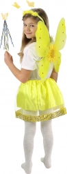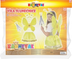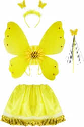 Det strålende gule solsikke-kostume fanger blikket ved første øjekast – glitrende detaljer, fine sten og en blomst i midten af vingerne giver et magisk udtryk. Det luftige skørt er kantet med gyldne pailletter nederst, så det funkler smukt ved hver bevægelse.