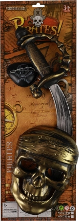 - Komplet sæt – maske, øjenklap og sværd i matchende piratstil.