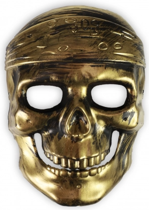 Stilfuldt piratsæt til små eventyrere indeholder en gylden maske med elastik, en øjenklap og et plastsværd med bronzefarvet greb. Det lette og holdbare PVC-materiale er ideelt til karneval, fester og rolleleg derhjemme.