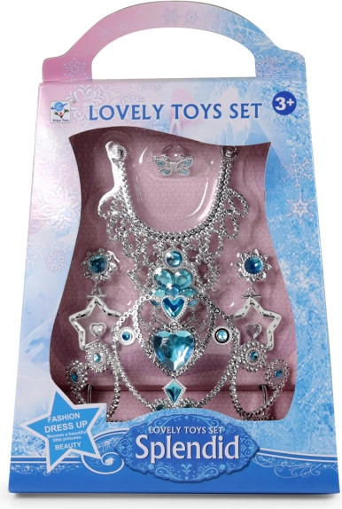 I pakken finder du alt, hvad en lille prinsesse behøver til den perfekte udklædning – fra krone til øreringe. Tilbehøret er let, behageligt at have på og designet til at matche yndlingskjoler i stil med en vinterdronning.
