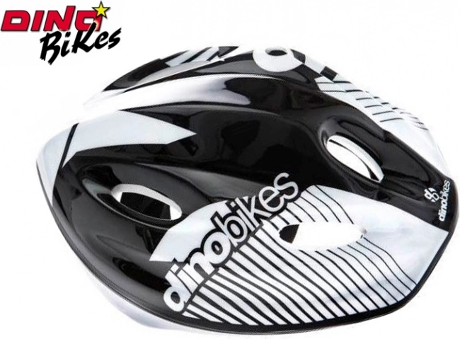 Børnecykelhjelm Dino Bikes i sort, hvid og sølv kombination sikrer maksimal sikkerhed og komfort ved cykling. Den er let, vejer kun 220 g og indeholder 5 ventilationsåbninger for optimal lufttilførsel.