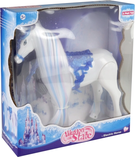 Vi præsenterer den elektriske hest fra Vinterrigets kollektion, der er den perfekte følgesvend for små eventyr- og fantasielskere. Denne magiske hest tilbyder følgende funktioner: