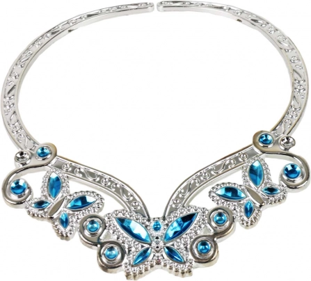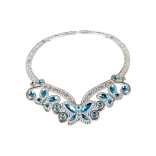 Halskæden med sommerfuglemotiv er det perfekte tilbehør til enhver lejlighed, udsmykket med blå sten for et strejf af sofistikation.