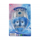 En vidunderlig krone til små prinsesser, inspireret af Vinterkongeri, er det perfekte tilbehør til ethvert kostume. Sættet inkluderer en krone og øreringe, udsmykket med blå detaljer for et magisk udtryk.