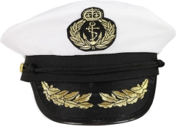 Stilfuld børne sømandskasket i kaptajns-motiv til karneval, maskerade og temafester. Den har en omkreds på ca. 54 cm og er et fantastisk tilbehør til kostumer.