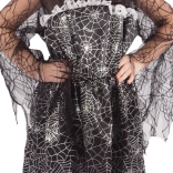 Kontrasterende sølvspindelvæv på den sorte kjole, takket kant og meshærmer giver kostumet en autentisk hekse-stemning, der skiller sig ud til enhver begivenhed.