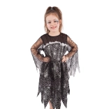 Forvandl den lille heks til aftenens stjerne. Elegante sorte kjoler med sølvfarvet spindelvævsprint, transparente meshærmer og en dramatisk takket kant skaber et perfekt uhyggeligt, men stadig nuttet look til Halloween, karneval og temafester.