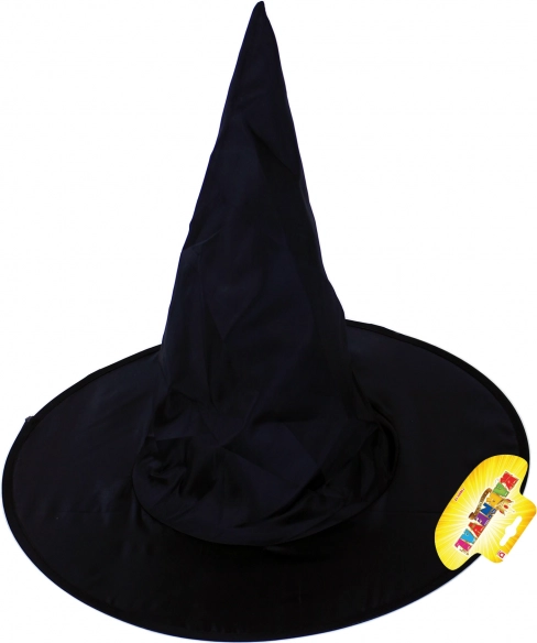 Stilfuld sort heksehat til voksne, ideel til karneval, Halloween og temafester. Med sin markante form og universelle farve bliver du umulig at overse, og du kan nemt fuldende enhver hekses eller troldmands kostume.