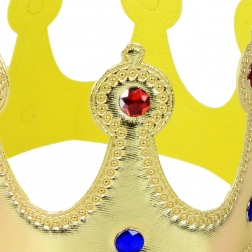 Karnevalskongekrone i stof, pyntet med små sten. Med velcrolukning. Længde ca. 53 cm.