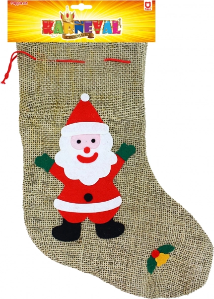 Bring højtidens magi hjem med denne stilfulde Mikulás-strømpe i naturligt jutelærred. Det praktiske ophæng gør det nemt at hænge den på pejsen, dørhåndtaget eller gelænderet, og det dekorative print giver indretningen en festlig stemning. Med en længde på 38 cm rummer strømpen en gavmild mængde slik, frugt og små gaver.