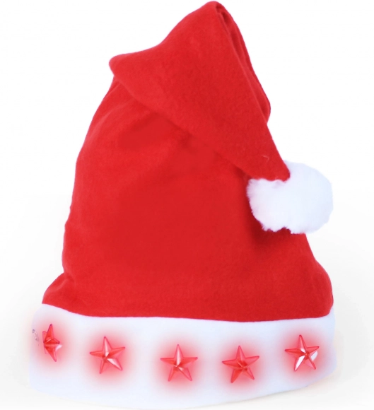 Denne originale julehat med blinkende stjerner giver dit outfit et legende, festligt pift. Den er lavet af let filt, behagelig at have på, og takket være den integrerede knap tænder du nemt LED-effekterne på et øjeblik.