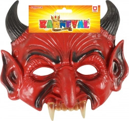 En skræmmende djævlemaske i gummi løfter ethvert kostume. Takket være det realistiske udseende og den behagelige fastgørelse med elastik er den ideel til Halloween, karneval og julefest. Anbefales til 14+.