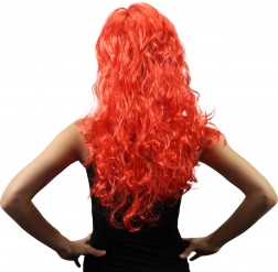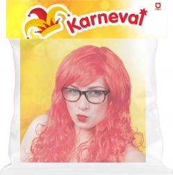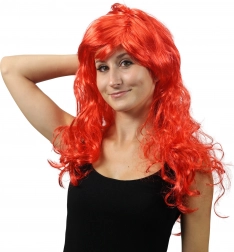 En iøjnefaldende paryk med lange, bølgede lokker og pandehår i en dyb rød farve, der giver ethvert kostume en markant stil. Ideel til karneval, fester og cosplay, og byder på behagelig brug og nem vedligeholdelse takket være kvalitetssyntetiske fibre.