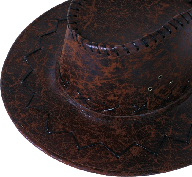 På udkig efter et iøjnefaldende tilbehør til festival, fest, cosplay eller naturen? Denne cowboyhat i brun farve skiller sig ud med kunstlædermateriale og dekorative stikninger langs kanten og på kronen. Den er nem at kombinere med både casual og tematiseret tøj og giver dig en selvsikker western-stil.