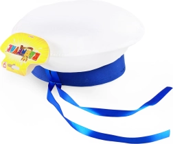 Giv dit barn et stilfuldt tilbehør i sømandsstil. Denne kasket imponerer med en satinsløjfe og en markant hvid tekst på panden, som understreger det legende, men elegante udtryk. Perfekt til temafester, fastelavn, fotoshoots og til almindelig sommers brug.