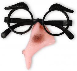 Næsen er lavet af fleksibel gummi for bedre pasform, brillerne af holdbart PVC, så de sidder godt i ansigtet og kan klare selv vildere sjov.