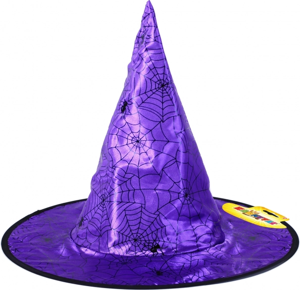 Stilfuld lilla heksehat til børn med motiv af spindelvæv og edderkopper, perfekt til Halloween, fastelavn og temafester. Takket være det iøjnefaldende design og den lette konstruktion bliver den et uundværligt tilbehør til kostumet og hjælper dit barn med at stråle til enhver begivenhed.
