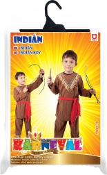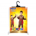 Stilfuldt indianerkostume til børn i brun farve til alderen 4–6 år, som vil glæde enhver lille eventyrer. Sættet inkluderer overdel med mønster, bukser med frynser og et rødt tørklæde. Perfekt til fastelavn, skolearrangementer og kostumefester.