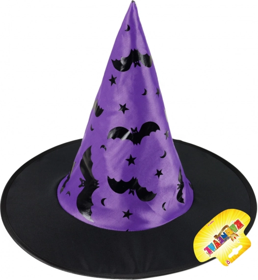 Forvandl dit barns kostume til et fuldendt magisk show! Denne heksehat med flagermusmotiv fanger opmærksomheden ved første øjekast og fuldender outfittet til halloweenfesten, skolearrangementet eller maskeballet.