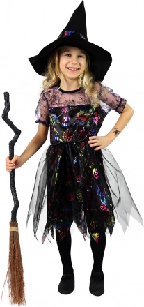 Forkæl den lille heks med et perfekt kostume, der skiller sig ud til enhver fest. De lette og behagelige kjoler i sort‑lilla nuancer er pyntet med farverige Halloween-motiver, som giver et legende og magisk udtryk. En matchende spids hat fuldender det klassiske hekselook.