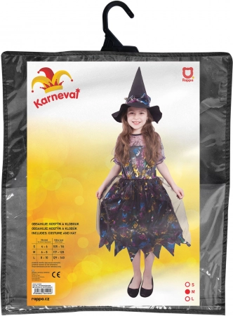 Pakken indeholder en matchende spids hat, så kostumet straks er klar til Halloween og karneval.