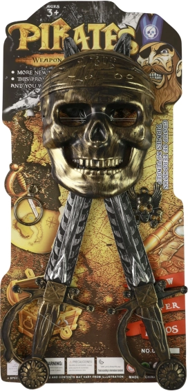 Med dette piratsæt bliver enhver leg eller kostumefest til et spændende pirateventyr. Sættet indeholder to plastsværd med detaljeret udførsel og en kraniemaskе, der giver din karakter et dramatisk look. Sættet er designet til at inspirere kreativitet og give timevis af rolleleg.