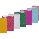 Stilfuld ringbundet glitternotesbog med 70 hvide linjerede ark i et kompakt format på 8,8 × 12,5 cm. Ideel til noter, tanker og idéer derhjemme, på kontoret og på farten.