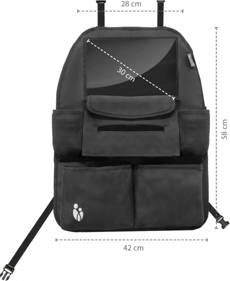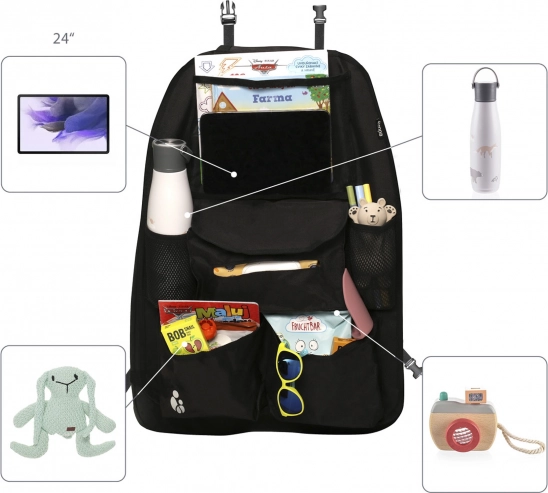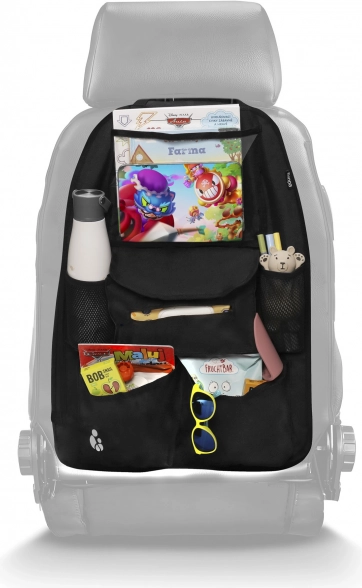 Gør bilturen mere behagelig med denne organizer, der er designet til maksimal komfort og orden. Den indeholder en beskyttende tabletlomme, som er kompatibel med tablets op til 24 cm, og gør det muligt for dine børn at se deres yndlingseventyr under kørslen.