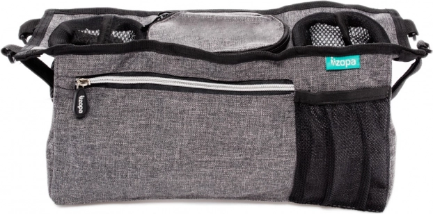 En praktisk og overskuelig organizer til barnevognen, ideel til gåture med baby. Den forreste del af organiseren har en stor lynlåslomme til småting, som mor kan få brug for under turen. Forsiden er også udstyret med en lille netlomme til mobiltelefonen, så man altid kan se, hvis der sker noget med telefonen, selv i lydløs tilstand. Så bliver babyen ikke vækket af lyde.
