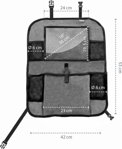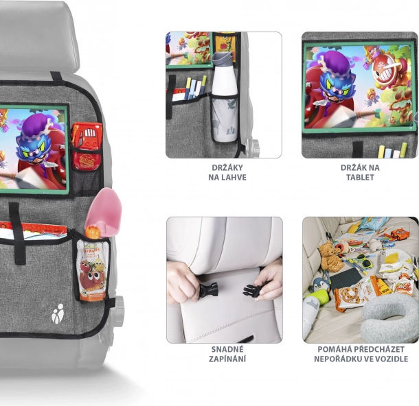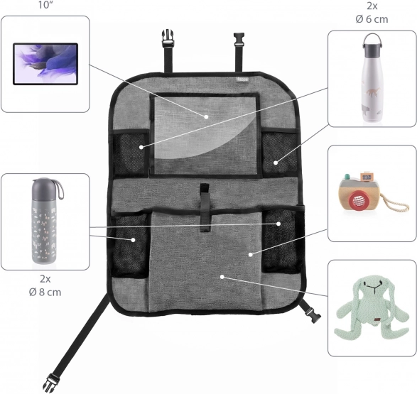 Praktisk sædeorganizer med lomme til tablet er den perfekte ledsager på hver rejse med børn.