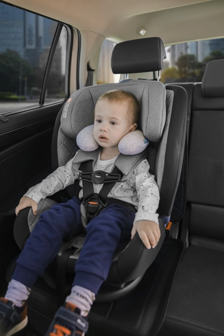 Børn rejser dermed mere komfortabelt og er roligere undervejs takket være den større bekvemmelighed, og under søvn holder den hovedet i den korrekte position. Nakkestøtten er lavet af memoryskum, så den nemt tilpasser sig barnets aktuelle behov. Det aftagelige, vaskbare betræk er af behageligt frottémateriale.