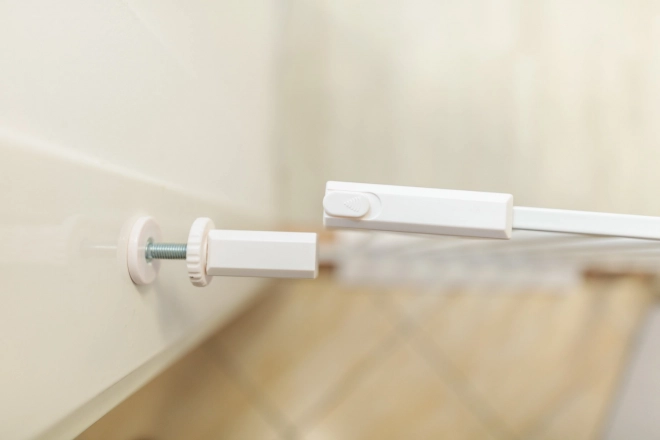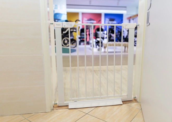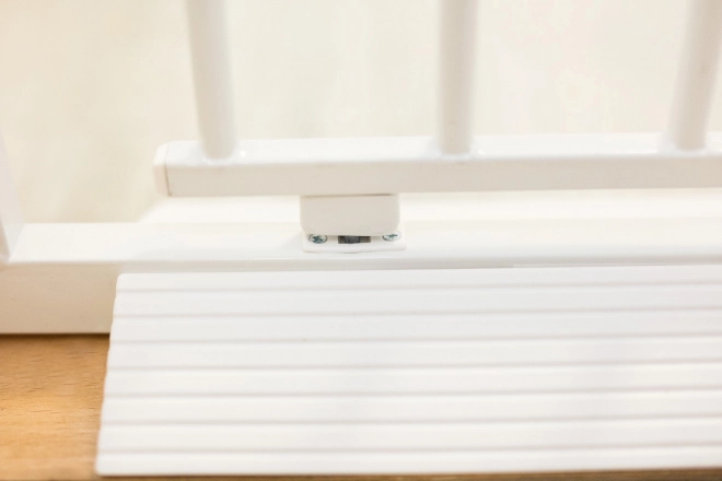Den faste U-formede ramme muliggør spændmontering. Hegnet kan derfor nemt installeres uden boring. Selve hegnet er beregnet til åbninger fra 75 cm til 81 cm. Pakken indeholder også en udvidelse, som gør det muligt at montere hegnet i åbninger med en bredde på 89–93 cm, samt en rampe, der gør det lettere at passere over hegnet. Hegnet har en kvalitets metal-konstruktion i hvidt design. Det åbnes nemt med én hånd og har et automatisk lukkesystem SMART CLOSE. Opfylder standarderne EN 1930:2011 og ASTM F1004-13 og er egnet til brug for børn op til 24 måneder.