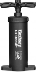 Håndpumpe 37 cm Bestway er den ideelle hjælper til hurtigt at pumpe luft i madrasser, cykler eller strandbolde. Den er udstyret med udskiftelige mundstykker, som gør den egnet til alle typer oppustelige produkter. Pumpen pumper luft både ved op- og nedadgående bevægelse, hvilket effektivt reducerer oppustningstiden. Takket være sin kompakte form er den ideel til ture til poolen eller stranden.