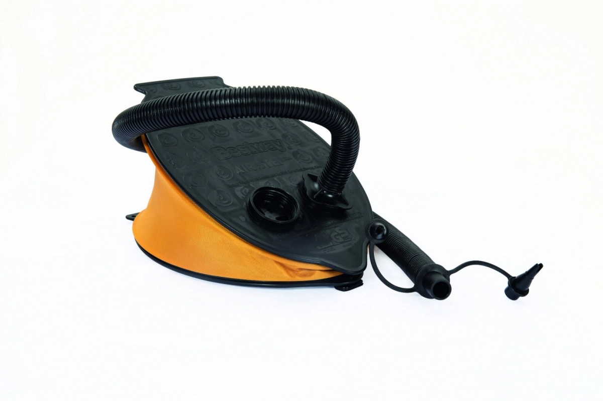 Denne lette og kraftige fodpumpe fra Bestway er ikke kun effektiv, men også nem at bruge. Det sort-gule design med fleksibel slange og tre udskiftelige dyser sikrer nem håndtering og effektiv oppustning af dine oppustelige legetøj eller madrasser.