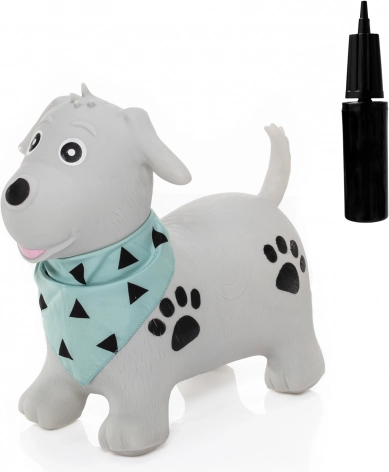 Det søde oppustelige hoppedyr formet som en hund giver børn endeløs underholdning og sund bevægelse. Takket være den ergonomiske form med ører som håndtag er hopningen behagelig og sikker, samtidig som den udvikler motorik og balance. Hoppedyret er uden ftalater, egner sig til både indendørs og udendørs brug, og i pakken finder du også en praktisk pumpe til nem oppustning.