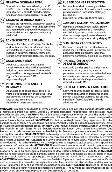 • Gummi hjørnebeskyttere dækker pålideligt hjørnerne på sofaborde, glasborde og andre steder med små, skarpe hjørner