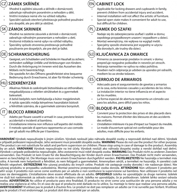 • Velegnet til sikring af skuffer og skabe i hjemmet