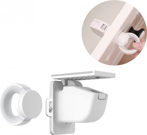 • Magnetlåsen har også en praktisk sikkerhedsspærre. Hvis du bruger skabet kontinuerligt, f.eks. i køkkenet under madlavning, kan du midlertidigt slå låsen fra og aktivere den igen, når skabet skal være urørt og sikret mod børn