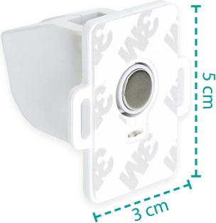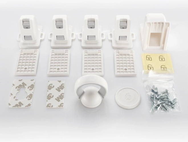 • Pakken indeholder 4 stk. låse, skabelon for nemmere montering, magnetnøgle, kvalitets 3M klæbetape, et sæt skruer og informationsmærkater til præcis placering af magnetnøglen. Der medfølger også en ophængsholder til at lægge nøglen, så du altid har den ved hånden