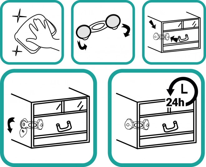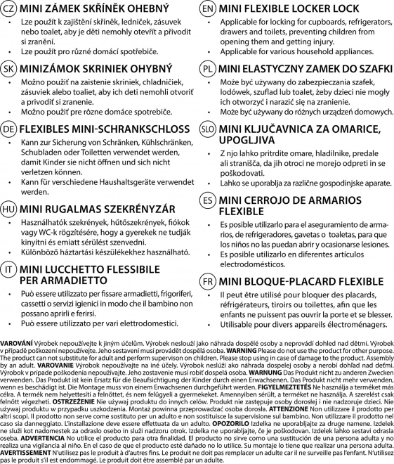 • Fleksibel mini-lås er beregnet til at sikre skabe, skuffer eller toiletter, så børn ikke kan åbne dem og komme til skade