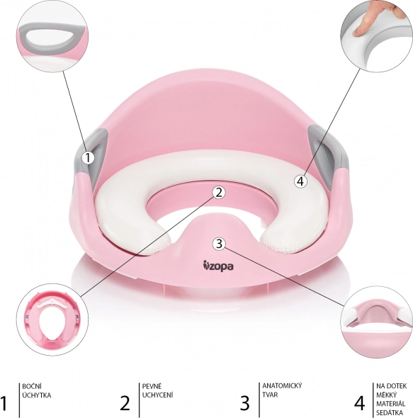 Overgangen fra potte til almindeligt toilet er en stor forandring for hvert barn. Det går dog legende let med en praktisk hjælper – WC-sædet ZOPA Coach. Sædet er fremstillet af holdbar, ikke‑giftig plast uden BPA, som er testet for sikkerhed. For maksimal komfort er der fastgjort en blød, vandafvisende indsats til sædets robuste konstruktion; den er modstandsdygtig over for revner og deformation. Smart placerede håndtag giver støtte under siddning.