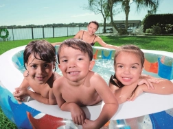 Den familievenlige oppustelige pool fra BESTWAY giver både børn og voksne forfriskning i haven. Den har brede, bløde vægge for komfort, en stabil I-Beam-konstruktion og en hurtigudløbsprop for nem tømning. Takket være det lette PVC-materiale kan du nemt flytte den efter solen. Velegnet til børn fra 6 år.