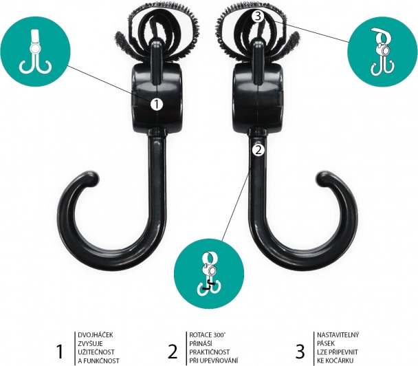 Klassisk dobbelt krog til barnevogn – 2 stk