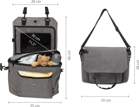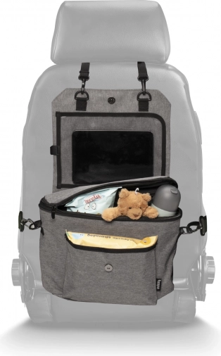 Organizeren er lavet af et slidstærkt materiale af høj kvalitet. Hvis du ikke har brug for den i bilen, kan den pakkes sammen og bruges som en stilfuld taske til barnevognen.