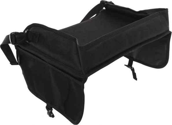 Med den justerbare fastgørelsesrem monterer du bakken nemt på de fleste autostole til børn med høj ryg. Det robuste tekstil er let at vaske af, så den egner sig også som bakke til snacks. Det sorte design er universelt og ser rent og elegant ud.