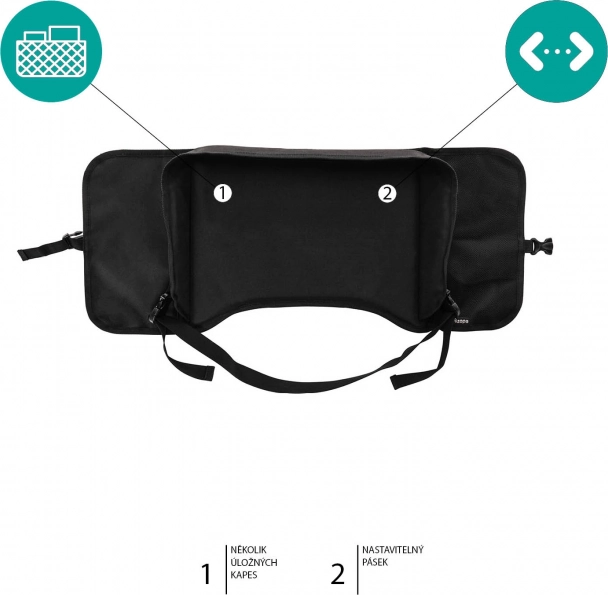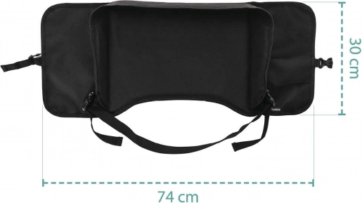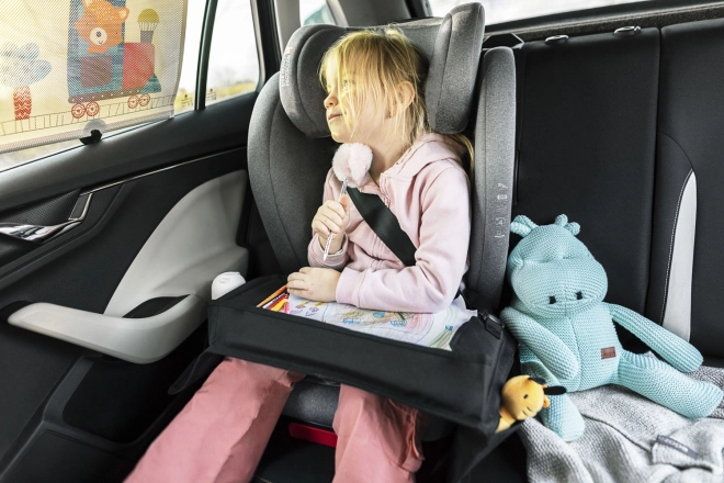 Farvel til kedelige bilture. Legebakken giver børn en behagelig og stabil overflade til malebøger, byggesæt eller tablet. Sidelommerne holder alt nødvendigt inden for rækkevidde – farveblyanter, servietter og små legetøj – og bilens interiør forbliver ryddeligt.