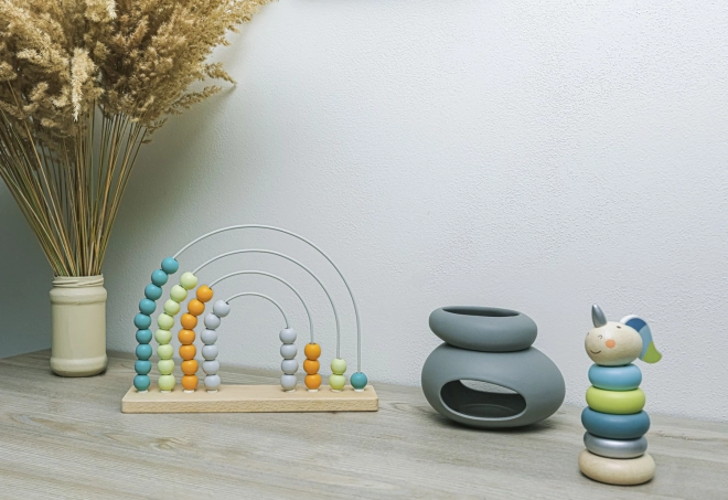 Den solide træfod sikrer stabilitet under leg og læring, så børnene kan fokusere fuldt ud på at flytte perlerne.