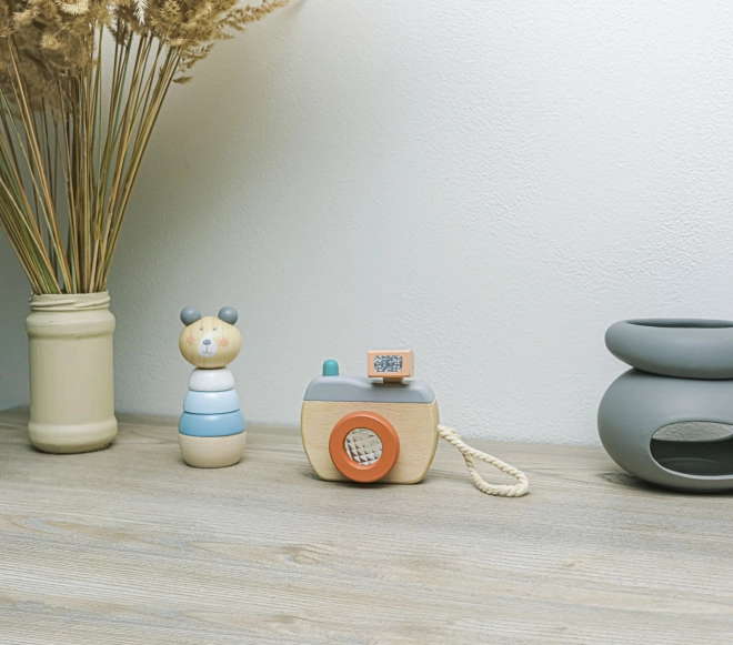 Træ kamera til børn, understøtter kreativitet og finmotorik, let at bære med realistisk lyd.