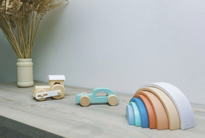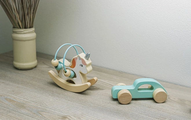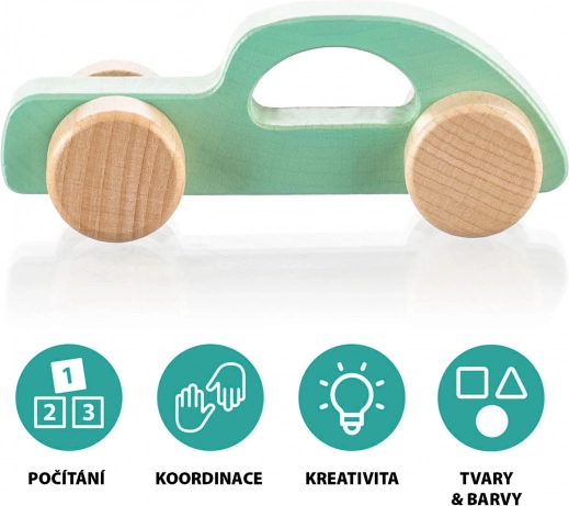 Træ sportsbilen er ideel til børn fra 16 måneder. Den er let og kompakt, hvilket vil glæde enhver lille chauffør. Fremstillet af kvalitets bøgetræ og med vandbaserede farver.